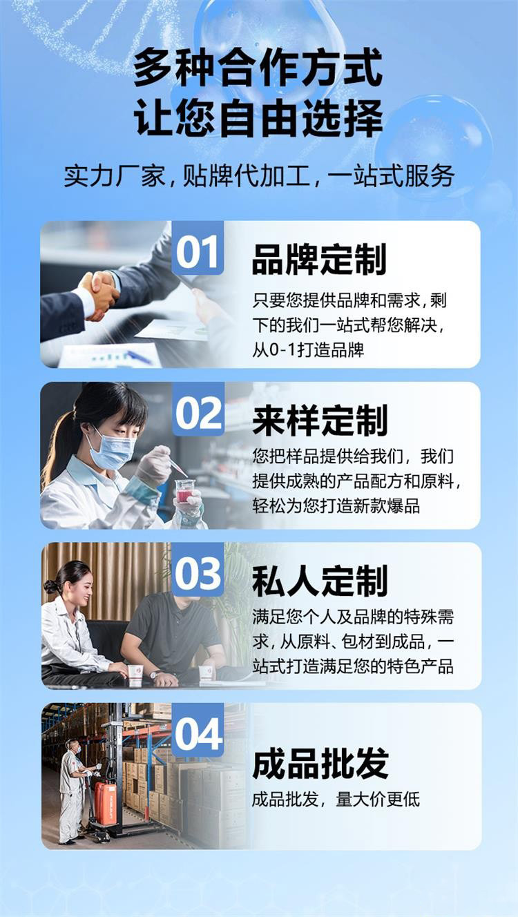 灵活定制:支持从试产到量产的多种合作模式,提供包装设计、规格定制等服务。