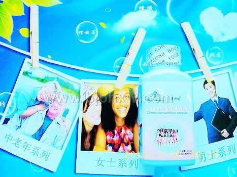 康斯健绿茶肉碱胶囊 本品是以左旋肉碱酒石酸盐、绿茶提取物、二氧化硅、硬脂酸镁为主要原料制成的保健食品,经动物和人体试食功能试验证明,具有减肥的保健功能。 [主要原料] 左旋肉碱酒石酸盐、绿茶提取物、二氧化硅、硬脂酸镁 [标志性成分及含量]每100g含:肉碱 40g、茶多酚 10g [保健功能]减肥 [适宜人群]单纯性肥胖人群 [不适宜人群]少年儿童、孕妇、乳母 [食用方法及食用量]每日3次,每次2粒,口服 [规 格]0.42g/粒X60粒 [保质期]24个月 [贮藏方法]密封、置干燥处 [注意事项]本品不能代替药物;减至正常体重后,请停止食用 [生产日期及批号]见瓶底 This product is health food made by using the L-carnitine tartrate, green tea extract, silica, magnesium stearate as the main materials, proved has the health care function of losing weight by animal and human function test. [Ingredient] L-carnitine tartrate, green tea extract, silica, magnesium stearate [Efficiency ingredient and content] Every 100g contains: carnitine 40g、Tea polyphenols 10g [Health care function] lose weight [Suitable group] Overweight and obesity crowd [Dosage] 2 capsules a time, 3 times per day,take orally