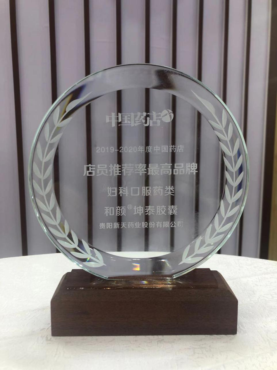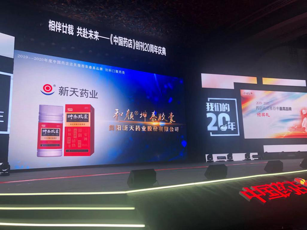 “2019-2020年度中国药店店员推荐率最高品牌”在此次盛典上隆重公布!贵阳新天药业的拳头产品:和颜®坤泰胶囊,凭借良好口碑与信赖推荐,喜获“2019-2020年度中国药店店员推荐率最高品牌”!