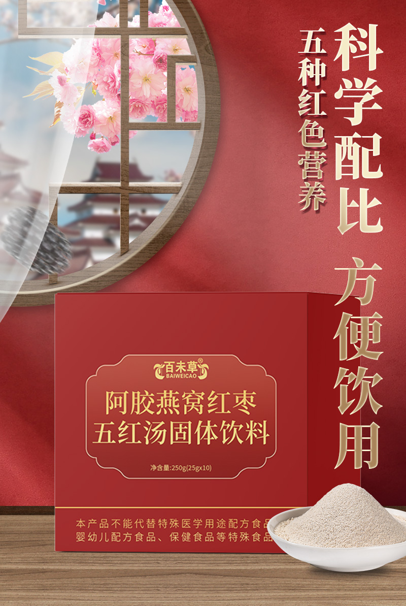 阿胶燕窝红枣五红汤固体饮料